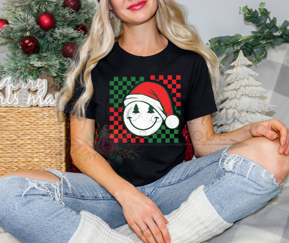 Add a modern twist to your holiday wardrobe with this Checkered Santa Happy Face T-Shirt. Featuring a cheerful Santa face with a trendy checkered pattern, this festive tee blends classic Christmas joy with a stylish, playful look. Comfortable and eye-catching, it’s perfect for holiday parties, shopping days, or cozy celebrations.