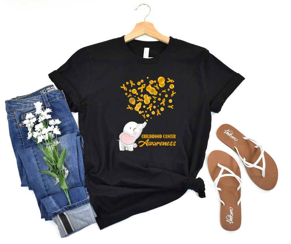 Show your support for the brave little warriors fighting childhood cancer with our Childhood Cancer Awareness Elephant T-Shirt. Featuring a sweet, symbolic elephant design and the iconic gold ribbon, this shirt spreads awareness with heart and purpose.