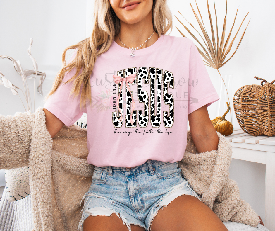 Ideal for church events, Bible study, youth group, casual outings, or daily wear, this graphic t-shirt is a meaningful reminder that Jesus is the way, the truth, and the life. The unique cowprint design adds a fun, modern twist to your faith wardrobe.