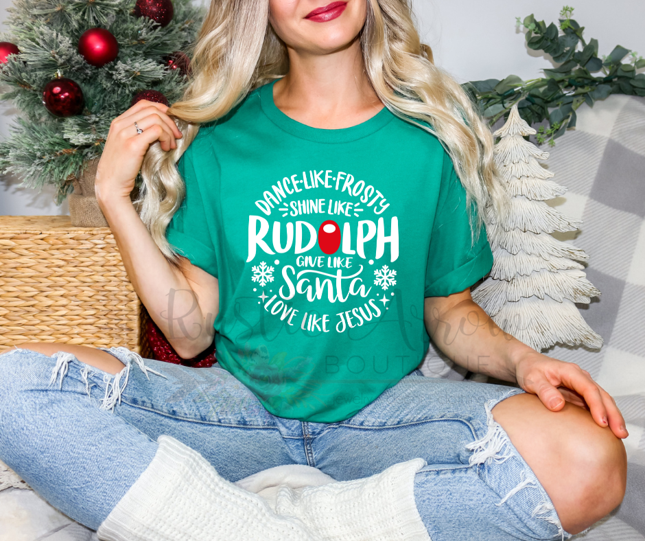 Celebrate the spirit of Christmas with our festive 'Dance Like Frosty, Shine Like Rudolph, Give Like Santa, Love Like Jesus' T-shirt. This cozy, stylish tee is perfect for holiday gatherings, Christmas parties, or gifting to someone who loves spreading joy and positivity. Show off your Christmas spirit while embracing the true meaning of the season!