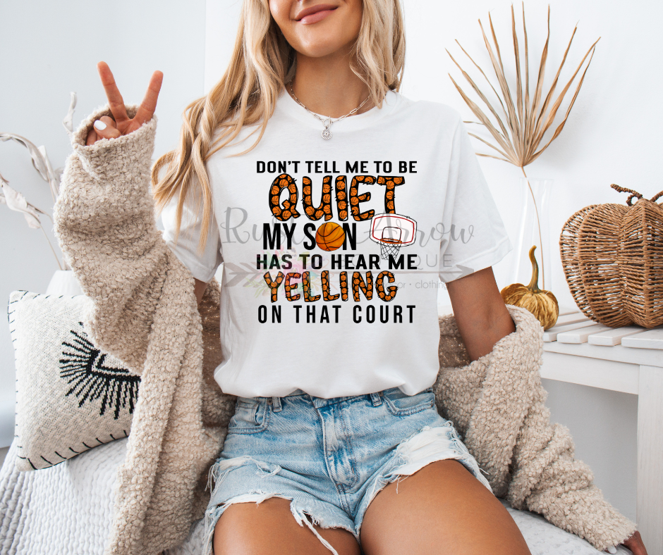 Show up loud, proud, and game-day ready with this bold “Don’t Tell Me to Be Quiet, My Son Has to Hear Me on the Court” T-shirt! Perfect for basketball moms who bring the energy from the bleachers, this fun and spirited shirt lets everyone know your cheers come from pure love and support.