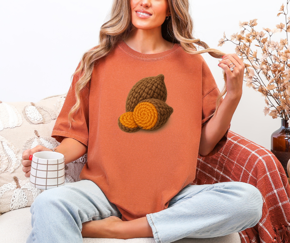 Add a playful touch to your fall wardrobe with our Faux Yarn Yam T-Shirt! Featuring a faux yarn–style yam graphic, this tee captures the warm, handcrafted look of stitched yarn—yet stays lightweight and comfortable thanks to its soft printed design. Perfect for Thanksgiving fans, foodie lovers, and anyone who enjoys cute, quirky seasonal apparel.