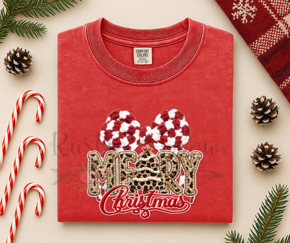 Bring bold, festive style to your holiday wardrobe with our Faux Yarn Leopard Merry Christmas T-Shirt, the perfect blend of cozy Christmas vibes and trendy leopard print! This unique design features a faux-yarn textured look paired with a chic leopard pattern, giving your holiday outfit a modern, fashionable twist.