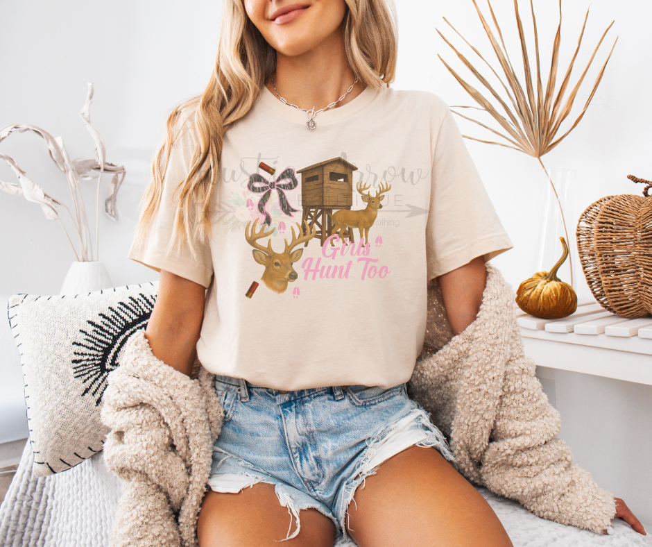 Show off your wild side with our “Girls Hunt Too” T-Shirt—the perfect tee for every woman who loves the outdoors! Whether you’re out in the woods, hitting the range, or just rocking your country style, this shirt is made for fierce, confident, and adventurous ladies who break the mold.