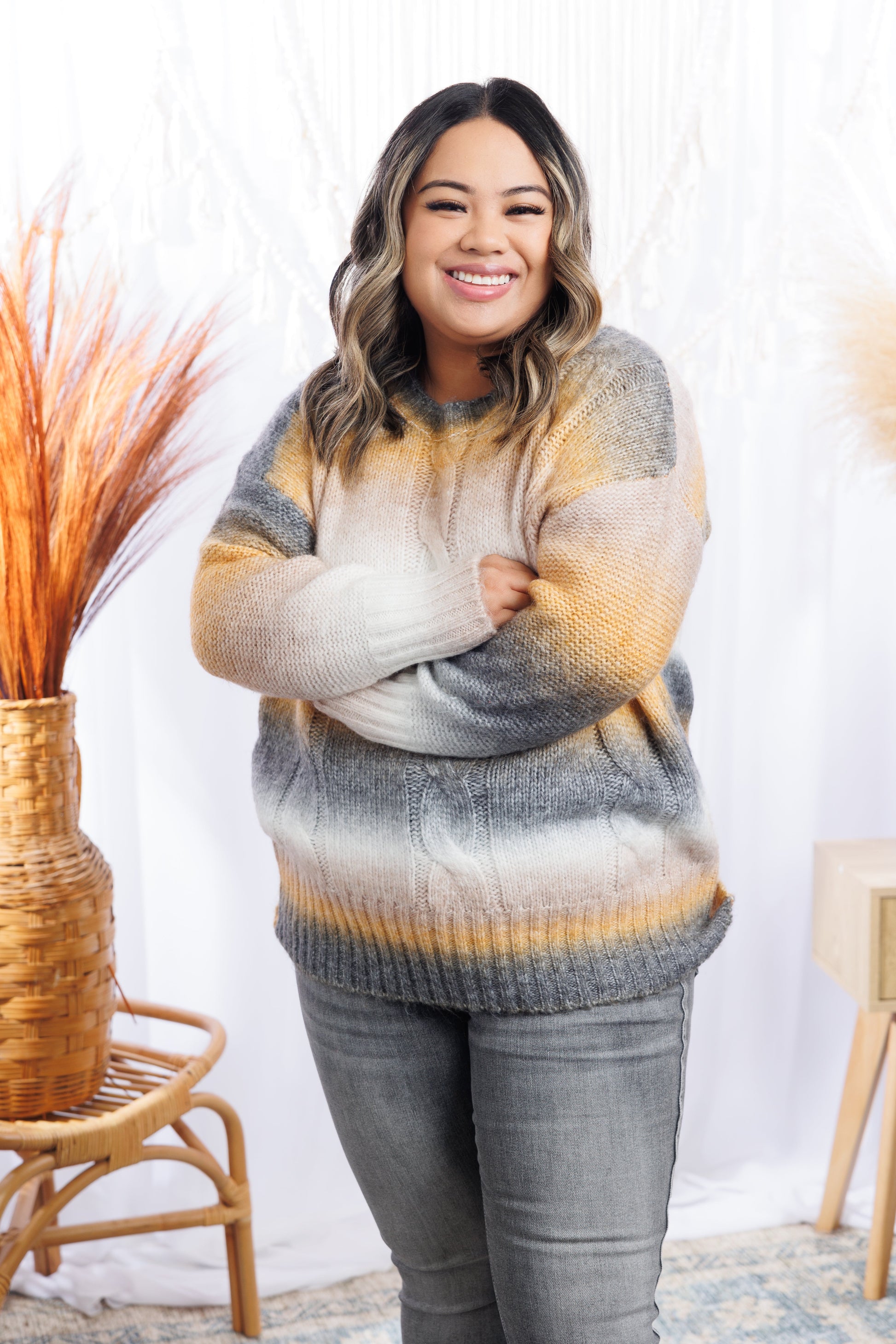 Gradually change up your wardrobe with this gradient-hued sweater. Crafted from soft and cuddly brushed knit, it features a round neck and long sleeves. Slip it on and pull up the cozy vibes!