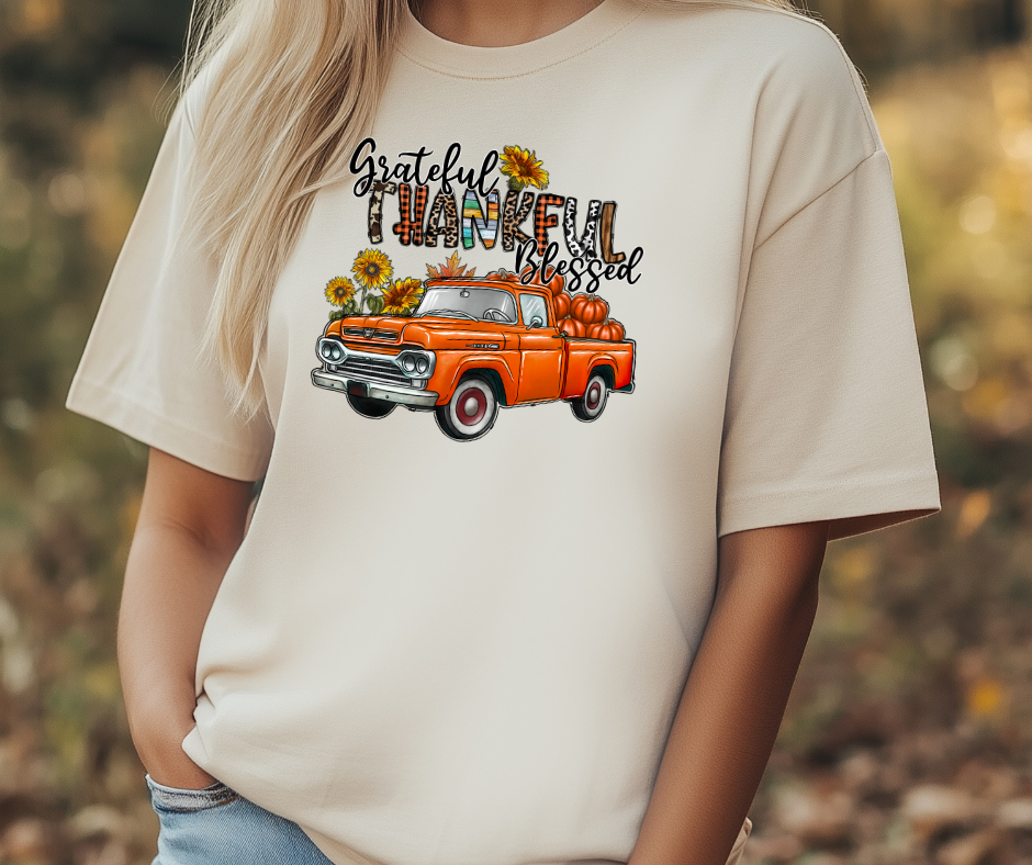 Share the spirit of the season with our Grateful Thankful Blessed T-Shirt! Designed with warm, uplifting lettering, this tee is perfect for Thanksgiving gatherings, fall outings, church events, family photos, or everyday wear. Its simple yet meaningful message celebrates gratitude, positivity, and the beauty of the season.