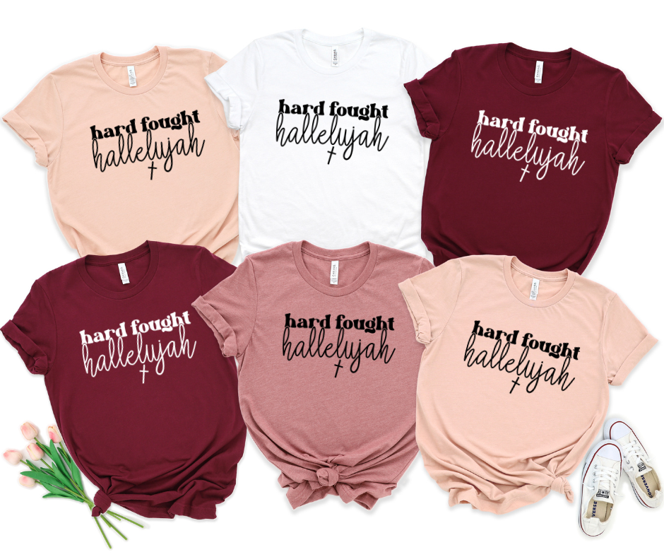 For the women who’ve been through the battles and still praise through the storm — this tee says it all. 💪✨ Our Hard Fought Hallelujah T-shirt is a beautiful reminder of strength, faith, and grace. Made from an ultra-soft cotton blend with a relaxed unisex fit, it’s perfect for everyday wear, church events, or pairing with your favorite jeans and boots for that effortlessly meaningful look.
