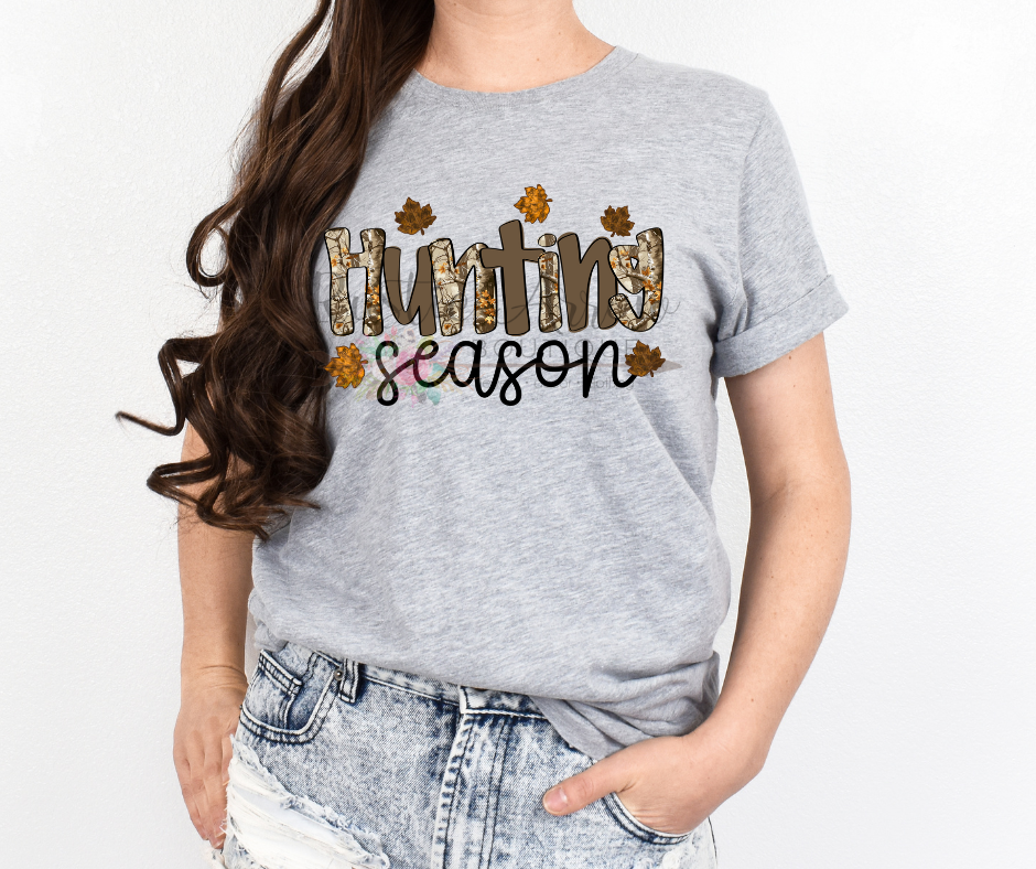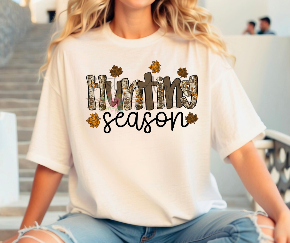Made from a soft, breathable cotton blend, this shirt is designed for all-day wear—perfect for long days in the field or casual weekends at home. The bold “Hunting Season” graphic makes it a standout piece for fall and winter hunting months.
