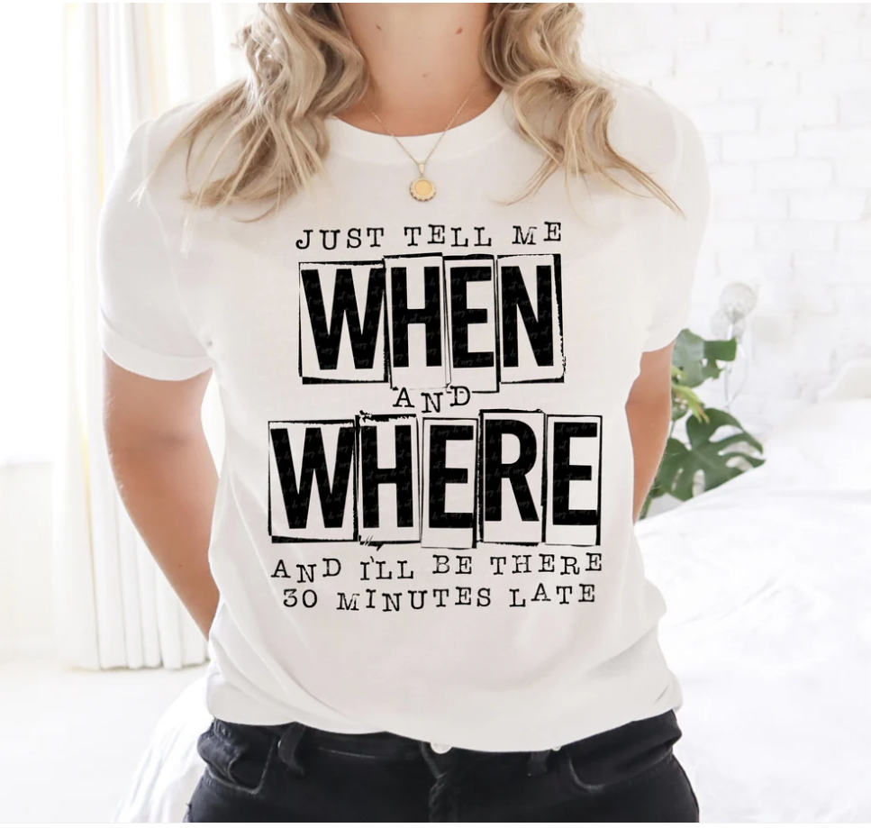 โฐ Just Tell Me When & Where... And Iโll Be There 30 Minutes Late Tee