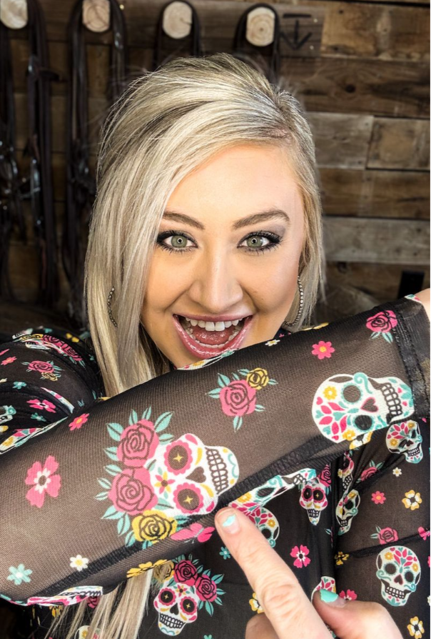 Get ready for fiesta season with our Life Is Brief Mesh Top! This stretchy and comfy top features adorable sugar skulls and is perfect for celebrating Cinco de Mayo. But don't worry, it's cute enough to wear all year round. Life may be brief, but this top is sure to bring some fun to your wardrobe!