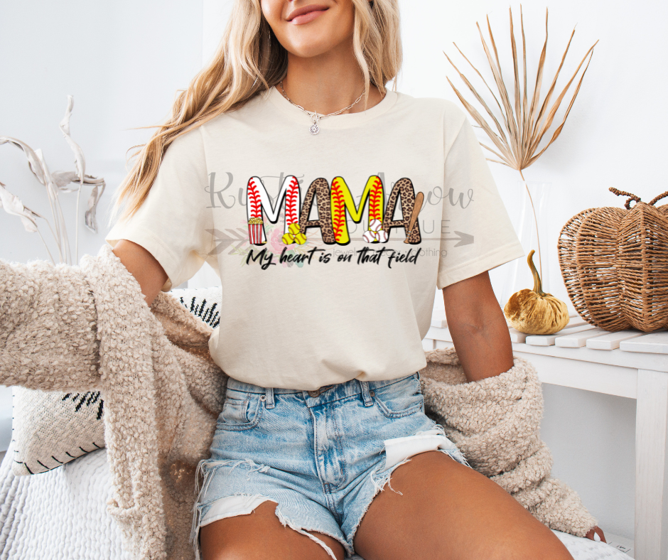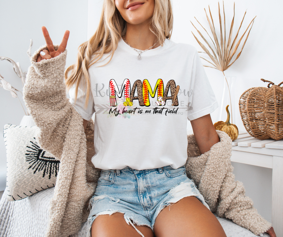Show your love and support for your athlete with this heartfelt “Mama My Heart Is On That Field” Baseball & Softball T-Shirt. Perfect for proud sports moms who spend their days cheering from the stands, this shirt captures the emotional connection every mom feels while watching her player on the field.