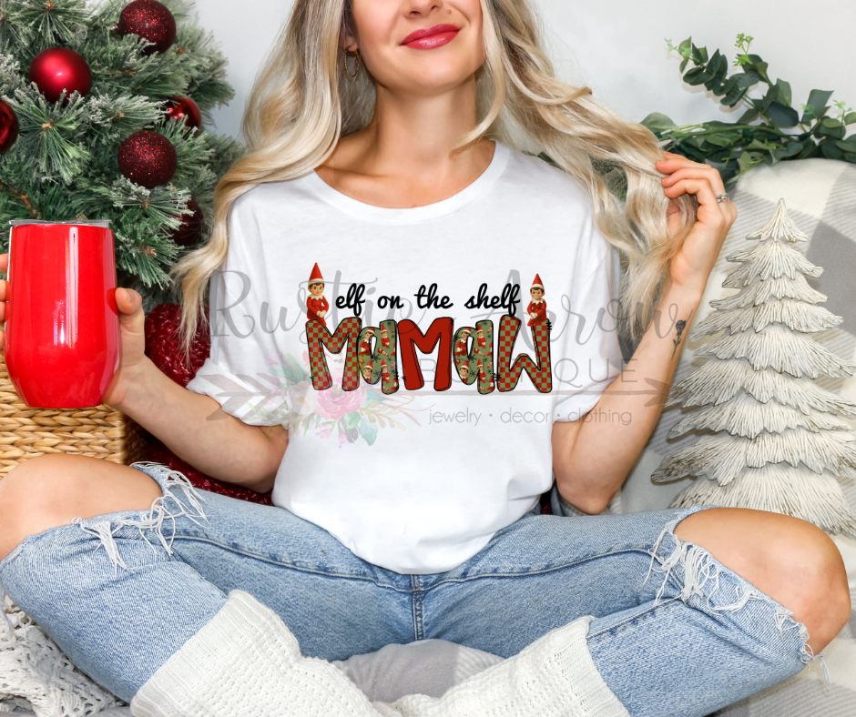 Celebrate the holiday season with our adorable Mamaw Elf Christmas T-Shirt, designed especially for the fun, festive, and fabulous mamaw out there! This cute and cheerful tee features a playful elf graphic paired with “Mamaw,” making it the perfect holiday shirt for family gatherings, Christmas parties, matching group photos, or gifting to your favorite aunt.