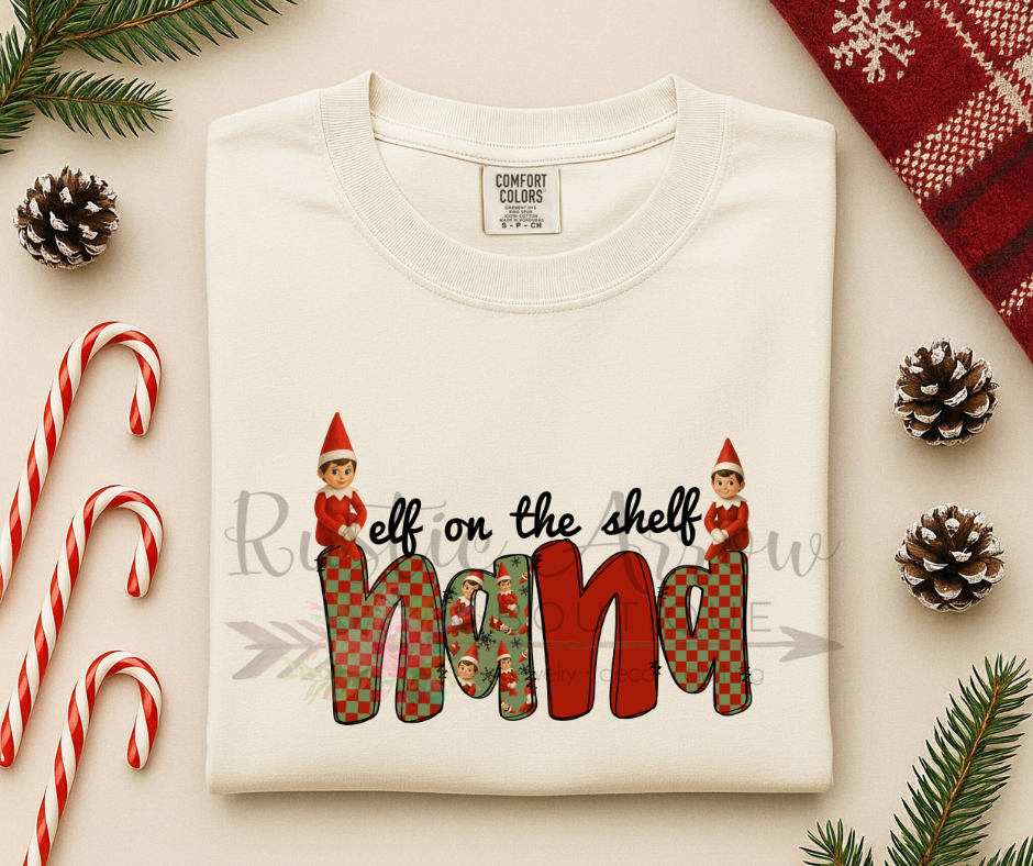 Celebrate the holiday season with our adorable Nana Elf Christmas T-Shirt, designed especially for the fun, festive, and fabulous nana out there! This cute and cheerful tee features a playful elf graphic paired with “nana,” making it the perfect holiday shirt for family gatherings, Christmas parties, matching group photos, or gifting to your favorite aunt.