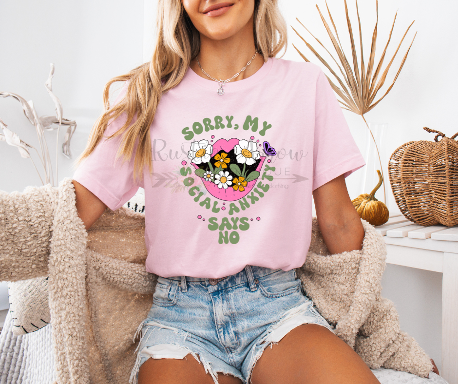 Say it without saying a word with our Sorry My Social Anxiety Says No T-Shirt. Perfect for introverts, homebodies, and anyone who values comfort and humor, this relatable graphic tee makes a lighthearted statement. Made from soft, breathable fabric, it’s ideal for casual outings, cozy days at home, or low-key social situations. A funny, honest shirt that’s perfect for everyday wear or as a thoughtful gift for someone who gets it.