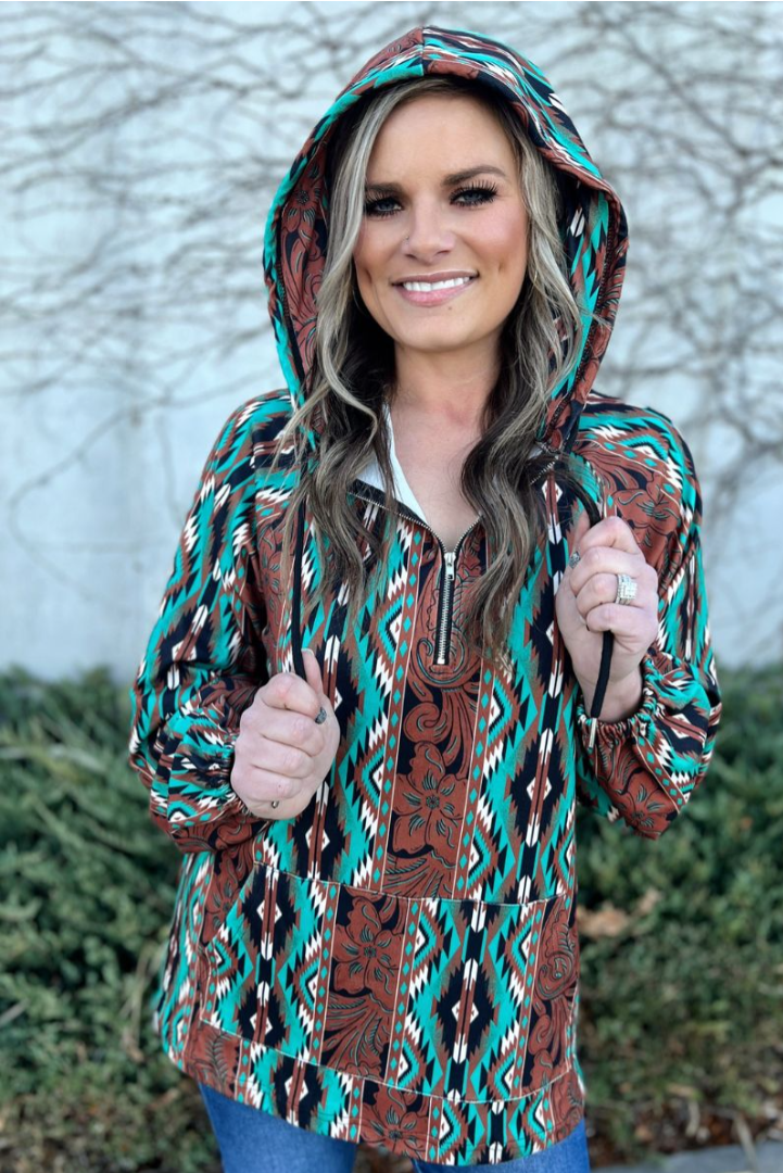 Introducing our Southbound Oversized Pullover - the perfect combination of style and comfort! With its cute and cozy oversized fit, hood, and kangaroo pouch, this pullover will keep you warm and stylish all season long. The convenient quarter zip adds a touch of functionality to this must-have piece.