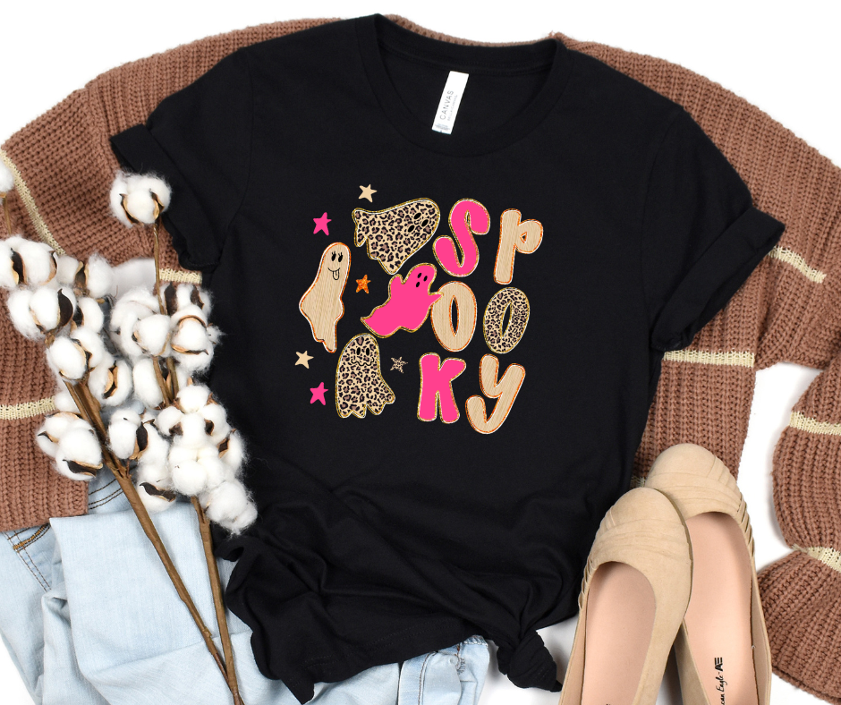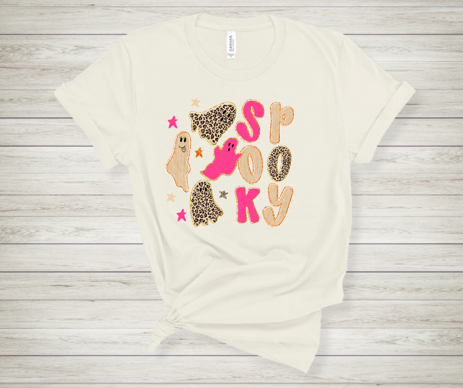 Our "Spooky" tee is the perfect mix of fierce and festive โ featuring bold orange and leopard print fonts with the cutest little ghost!