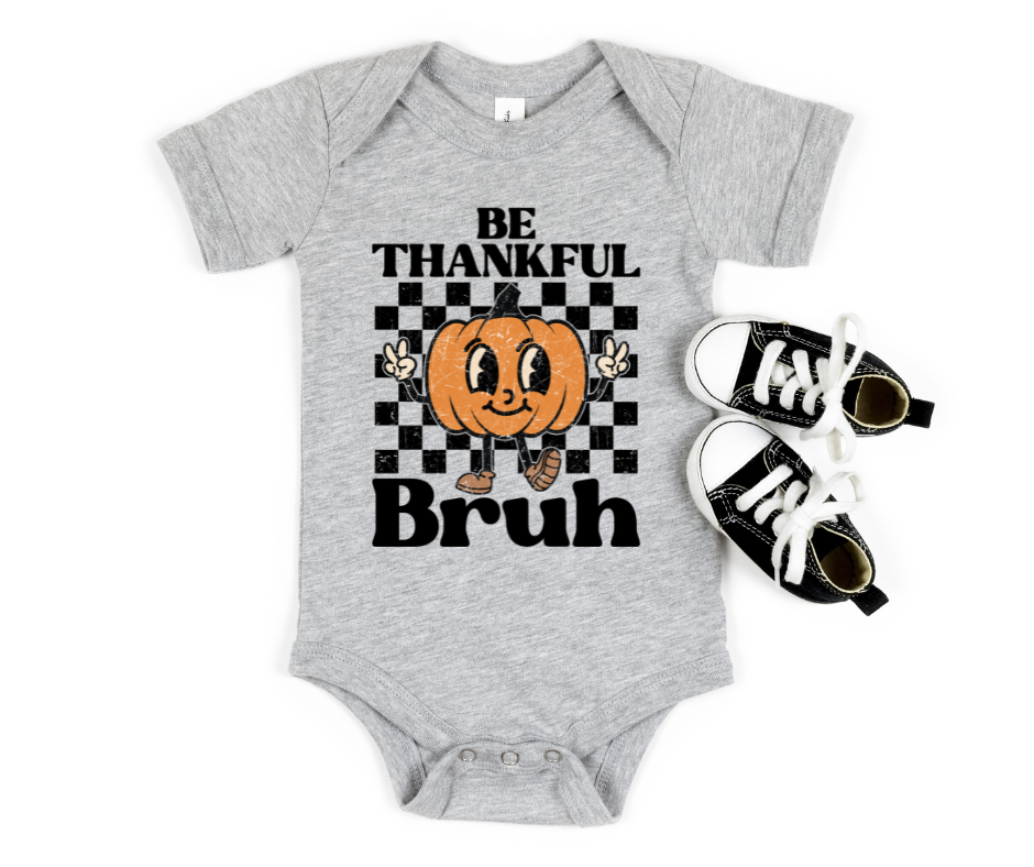 Keep it casual, cozy, and humorous this Thanksgiving with our “Be Thankful Bruh” T-Shirt! Perfect for family gatherings, Friendsgiving, pumpkin patch adventures, or just lounging in style, this tee brings the perfect mix of fall vibes and playful attitude to your wardrobe.