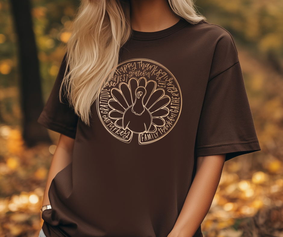 Bring festive fun to your Thanksgiving celebrations with this cozy and adorable turkey tee!