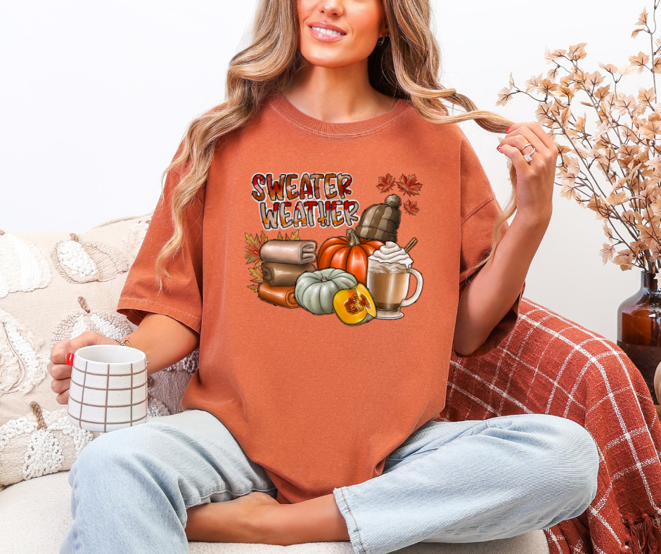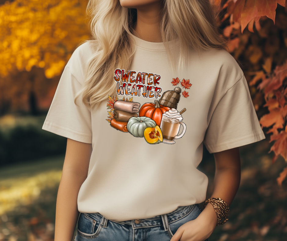 Embrace the crisp autumn air with our Sweater Weather T-Shirt! Perfect for layering, casual outings, pumpkin patch visits, or cozy coffee runs, this tee captures all the charm of fall in a soft, comfortable design. Whether you’re pairing it with jeans, leggings, or your favorite cardigan, it’s an effortless way to celebrate the season.