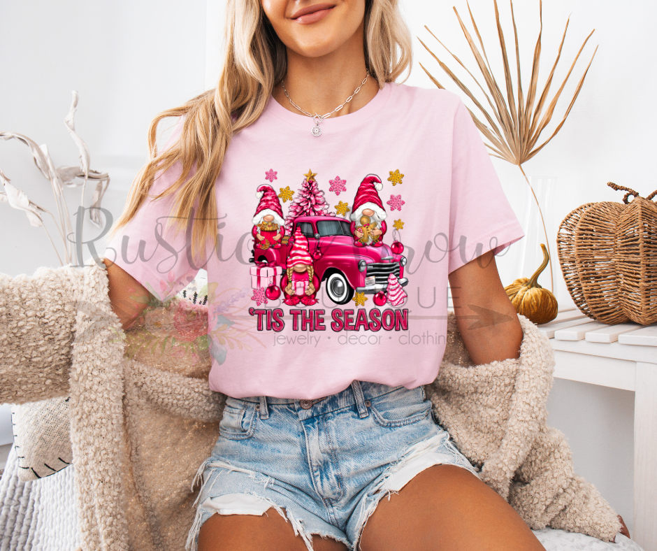 Bring cheerful holiday magic to your wardrobe with our ’Tis the Season Pink Gnomes T-Shirt! Featuring adorable pink gnomes in a festive Christmas design, this graphic tee adds a fun, whimsical twist to your seasonal outfits. Perfect for holiday parties, casual winter wear, or gifting to gnome enthusiasts, this T-shirt spreads playful Christmas spirit wherever you go.